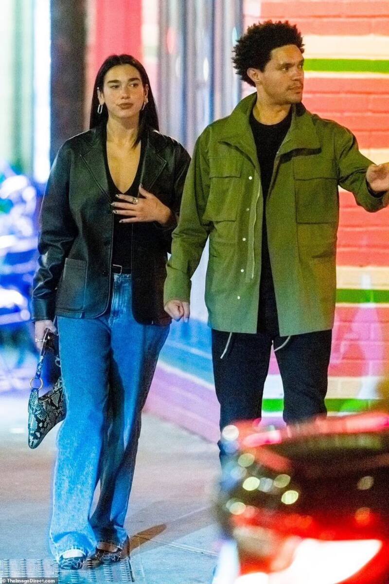 El pasado 28 de septiembre, Dua Lipa y Trevor Noah fueron vistos paseando y cenando en un restaurante jamaiquino en Nueva York. En las fotos compartidas por Daily Mail se pudo ver al dúo sonriente mientras pasaba una buena noche y se despedían con un apasionado beso.