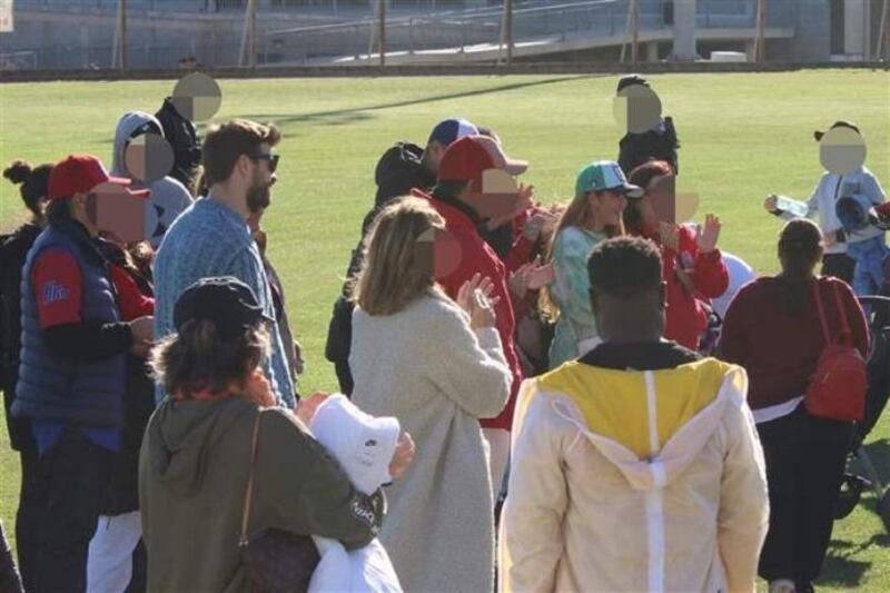 La colombiana estuvo acompañada por su hermano Tonino, mientras que el ex futbolista llegó sin Clara Chía Martí (23) aunque no estuvo solo, pues los padres del ex culé se encontraban en el campo para echarle porras a su nieto, llamando la atención de lo frío que resultó el encuentro entre la familia.