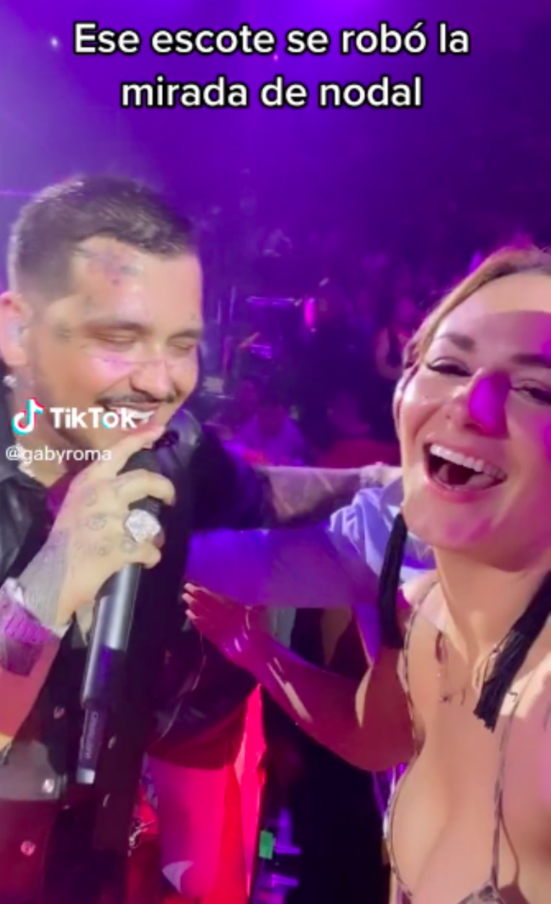Pero este no fue el único detalle de Nodal que llamó la atención en su paso por Tlaxcala, pues quedó en video cuando una joven, que se identificó como Gabi Roma, llama la atención del cantante mientras ella graba y él interpretaba Te voy a olvidar, pero no estaba planeado grabar cuando el cantante le mira el escote a la joven. “Ese escote se robó la mirada de Nodal”, escribió Roma en TikTok.