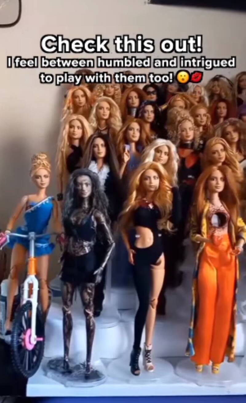 A través de su cuenta de Instagram, la artista posteó un breve video en el que expresó su sorpresa al descubrir que uno de sus fans, llamado Jose Emery, había creado más de 30 Barbies que llevan los looks que lució la cantante en algunos videos de sus éxitos musicales, pero también los outfits de etapas de su carrera, desde que inició en la música.