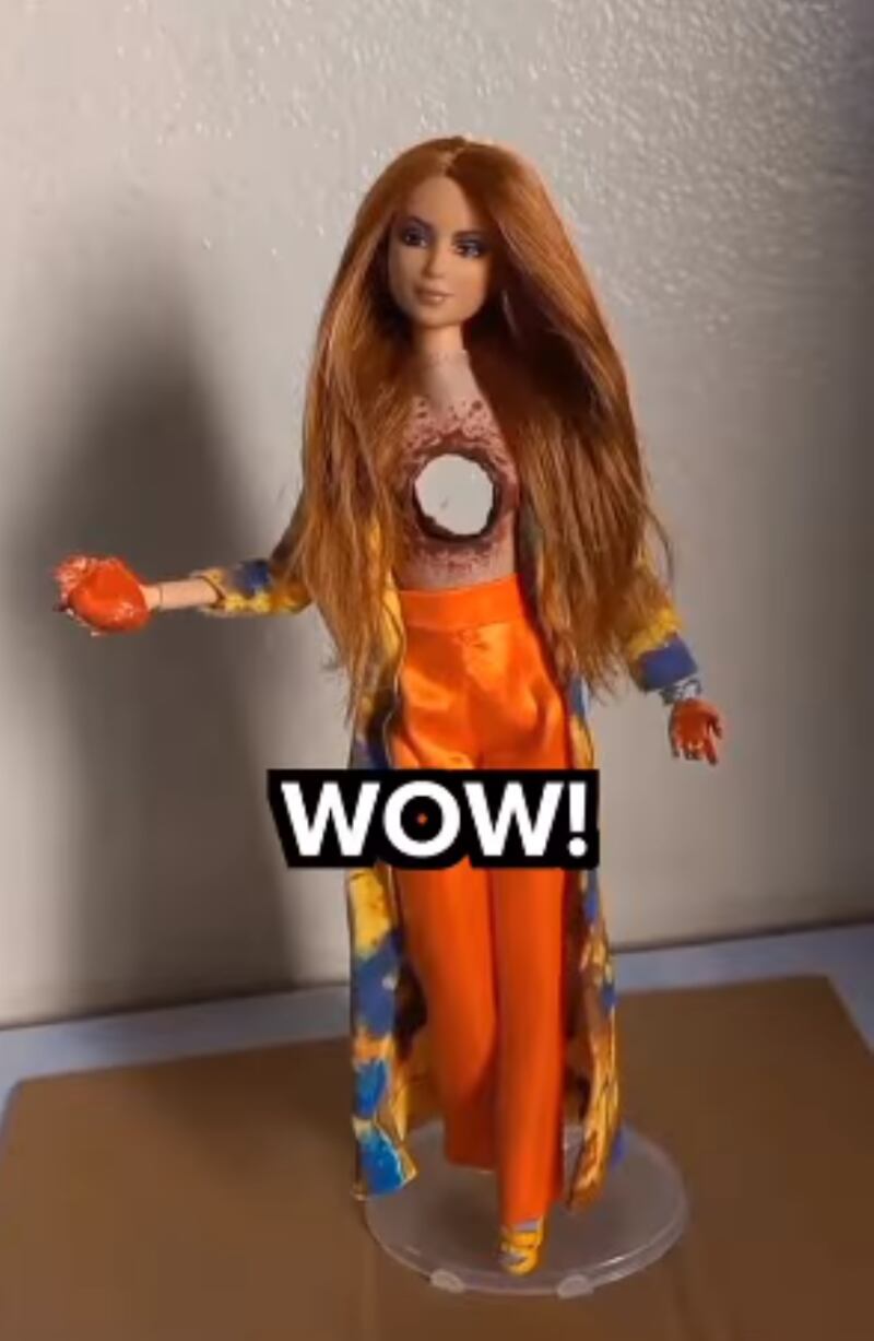 “¡Mirad esto! ¡Me siento entre humilde e intrigada por jugar con ellas también!”, escribió la cantante al compartir el clip en la que se aprecia las diferentes muñecas personificando a Shakira en el video de La Tortura, Loba, La bicicleta o su más reciente canción, Monotonía, incluyendo el agujero que tiene la cantante en el pecho y su corazón en la mano.