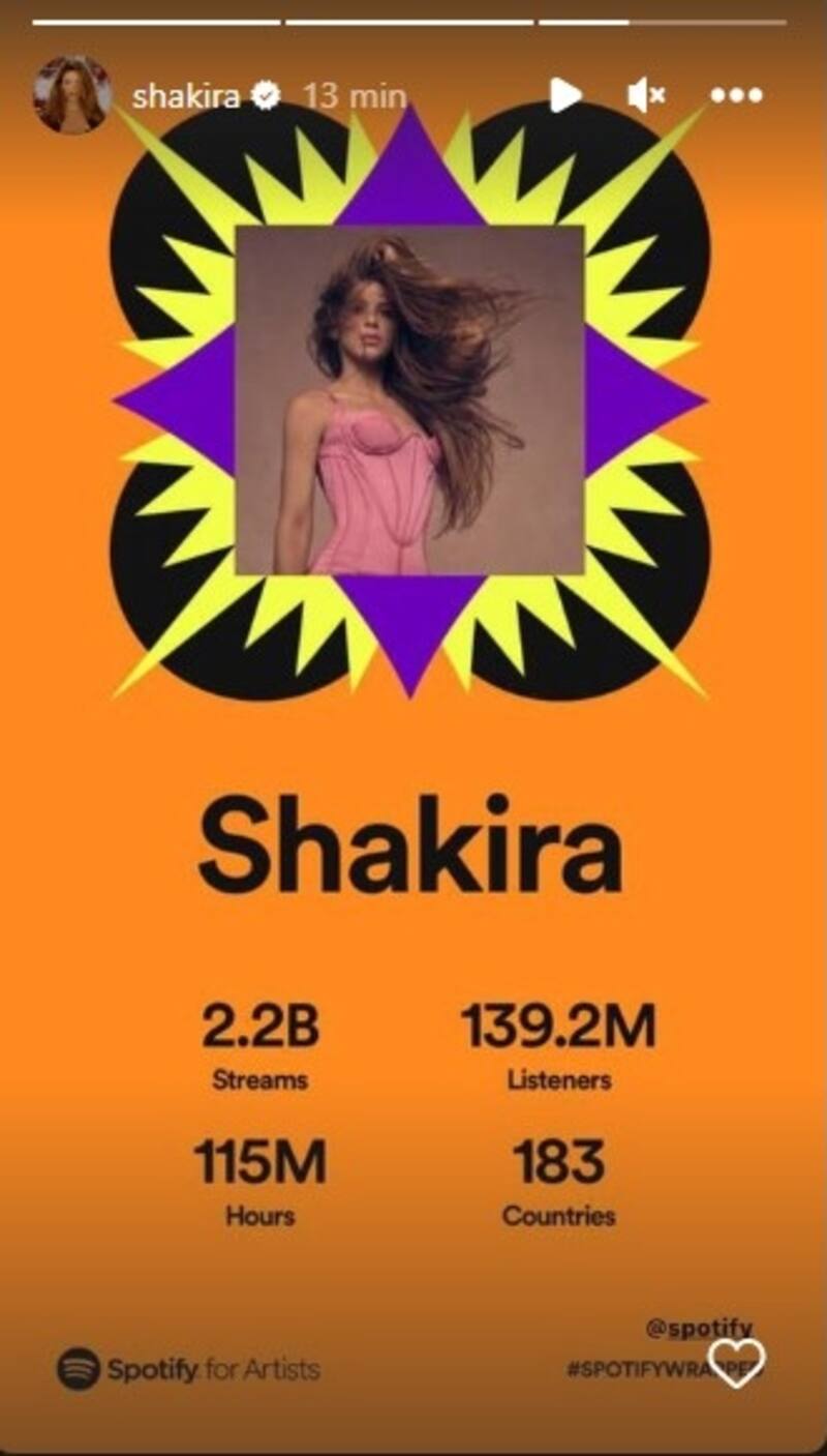Antes de cerrar noviembre, Spotify lanzó Wrapped, el resumen anual personalizado para todos sus usuarios en los cuales miden sus estadísticas dentro de la plataforma y las canciones que más escucharon este año, pero con la novedad de que algunos artistas dejaron mensajes para sus fans, entre ellos Shakira (45).