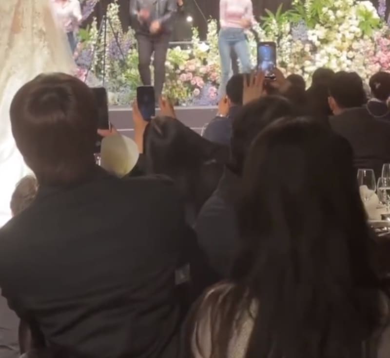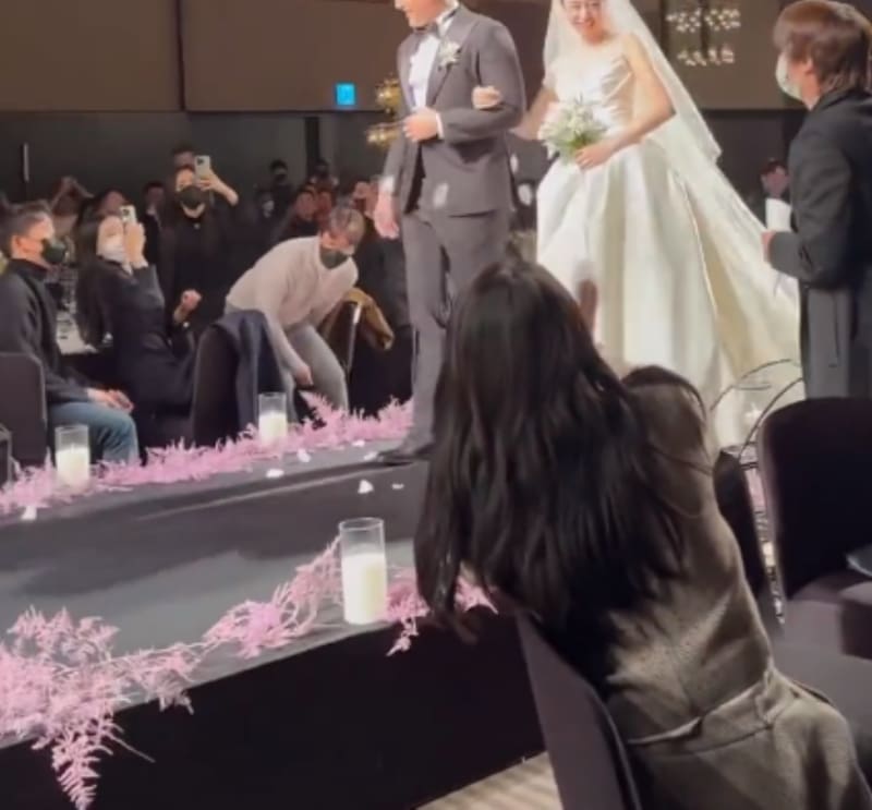 Jin apareció en videos y fotografías disfrutando de la fiesta. Varias imágenes pudieron captarlo mientras estaba grabando al béisbolista cuando bailaba "Roly Poly", uno de los éxitos icónicos de T-ARA. Otros regstros hay también lanzándole pétalos de rosa a los novios. Por otro lado, IU fue la encargada de cantar la canción nupcial de la ceremonia.