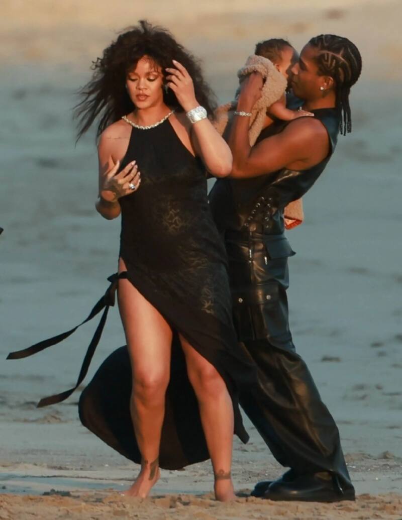 Según Page Six en el área había un equipo de cámara, por lo que se presume que la familia se encontraba realizando una sesión fotográfica escénica. Para las ilustraciones, la intérprete nacida en Barbados lucía un elegante vestido negro con una abertura que mostraba sus piernas, mientras que su cabello estaba peinado con rizos naturales que fluían con el viento. Por su parte, Rocky vestía un atuendo de cuero completamente negro que consistía en un chaleco, pantalones y una chaqueta.