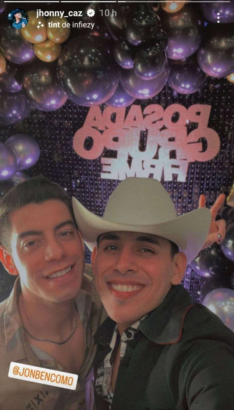 El cantante subió una foto al lado de su prometido Jonathan Bencomo, ambos posaron junto a unas letras de globos que formaban el nombre del grupo, también sonrieron ante las cámara al lado de un arreglo que colocaron en el sitio donde celebraron; el influencer y su futuro esposo lucieron un estilo completamente diferente pero no fue problema para que las imágenes salieran perfectas.
