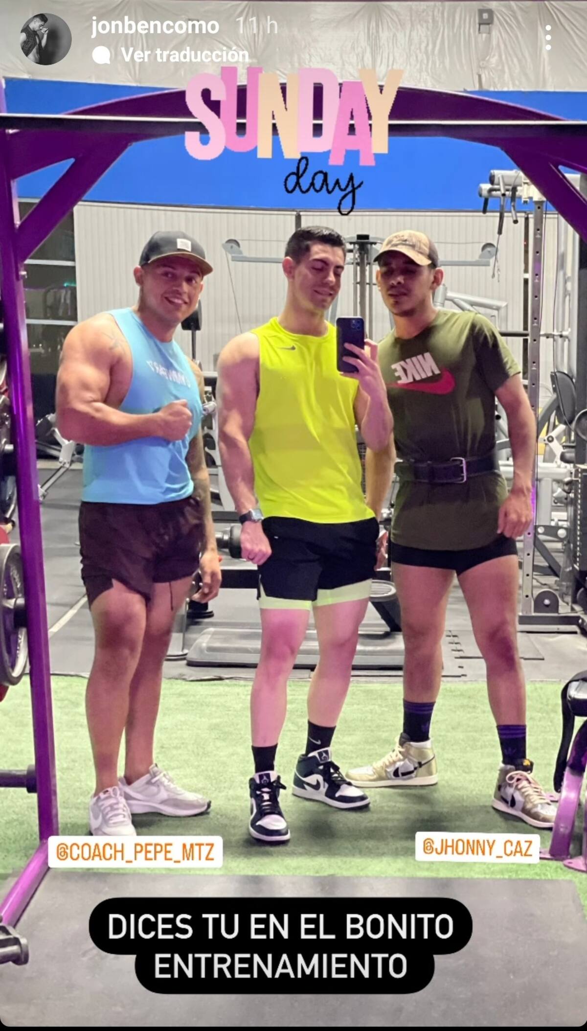"Dices tú, en el bonito entrenamiento", mencionó Jonathan. El cantante como su prometido no dejaron pasar desapercibido este día en el que sin importar la hora o el día están cumpliendo con lo que se propusieron para llegar al objetivo que desde hace meses se plantearon, y constantemente presumen en redes que sí están cumpliendo.