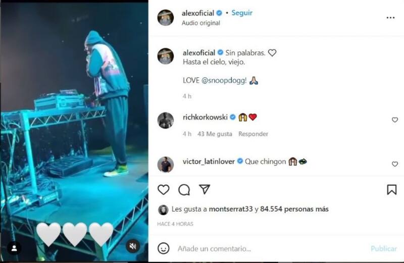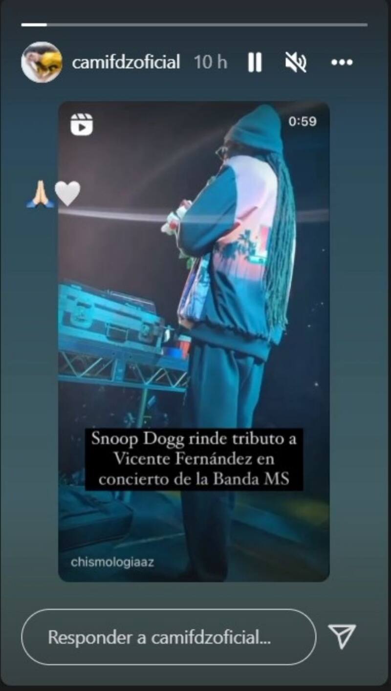 Uno de los más conmovidos fue Alejandro Fernández, hijo del intérprete, quien compartió la escena a través de sus redes sociales y las acompañó con este mensaje: “Sin palabras. Hasta el cielo viejo. Love @Snoopdogg”.