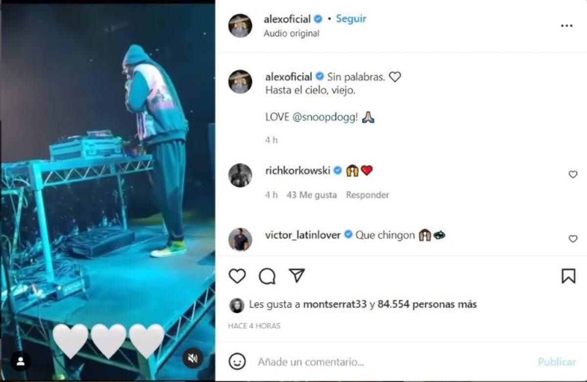 Uno de los más conmovidos fue Alejandro Fernández, hijo del intérprete, quien compartió la escena a través de sus redes sociales y las acompañó con este mensaje: “Sin palabras. Hasta el cielo viejo. Love @Snoopdogg”.