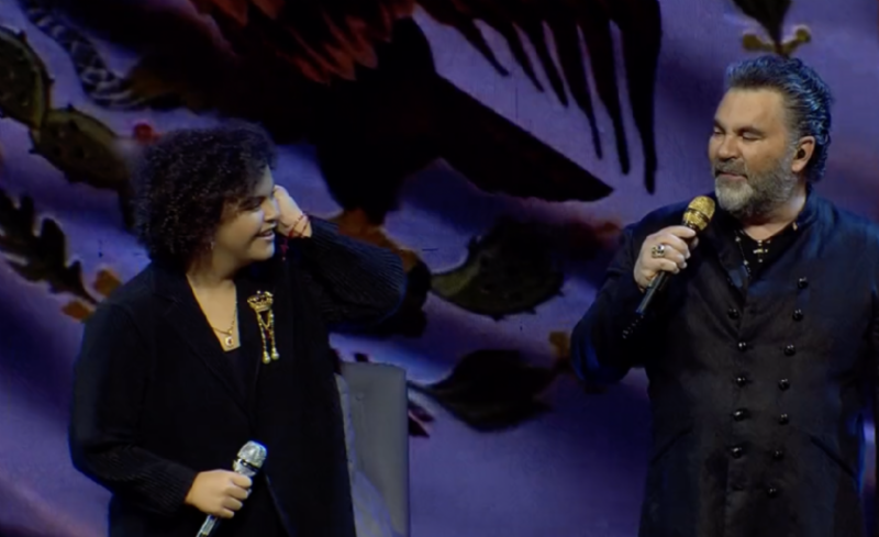La actuación de la joven emocionó al auditorio que la ovacionó junto a Mijares, que demostró cuán feliz y cómodo se siente compartiendo el escenario con su hija a quien incluso le propinó un beso en la cabeza mientras cantaban.