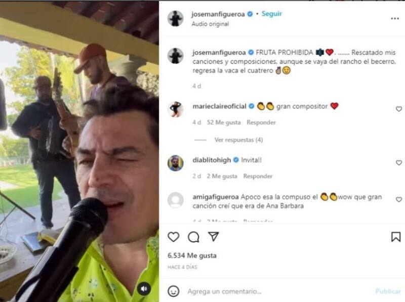 En el video que publicó José Manuel Figueroa en Instagram se le escucha cantando esta polémica canción. “FRUTA PROHIBIDA. Rescatado mis canciones y composiciones, aunque se vaya del rancho el becerro, regresa la vaca el cuatrero”, escribió al postear la grabación. Algunos fans mencionaron sorprendidos que habían pensado que esta melodía era de Ana Bárbara y no sabían que pertenecía a él.