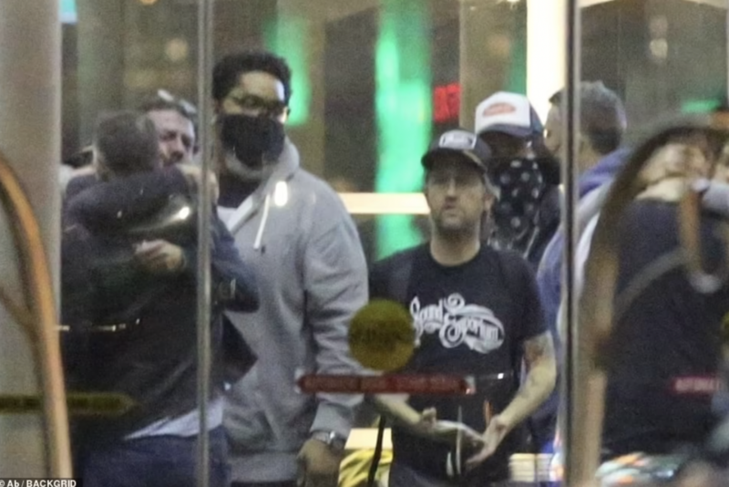 El músico fue captado a su arribo al aeropuerto de Los Ángeles mientras lloraba abrazando a sus compañeros de la agrupación y a su mánager, John Silva.