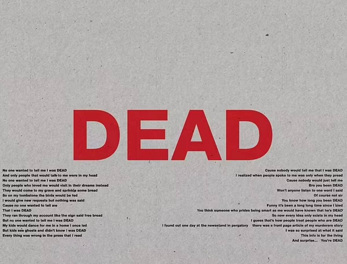 Por medio de su cuenta de Instagram, el rapero subió una publicación con la palabra "DEAD" (muerte) en letras rojas acompañado de frases del poema en que hace referencias polémicas sobre sus hijos como: "Mis hijos bailarán para mí en una casa que una vez dirigí".