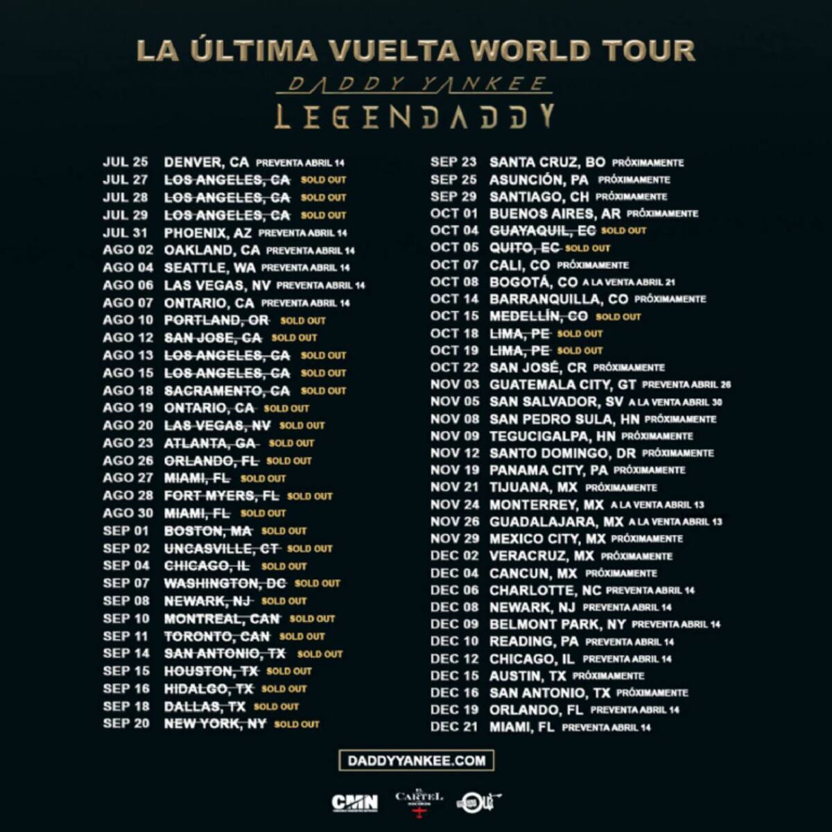 Luego de que Daddy Yankee anunciara su retiro de la música, el pasado mes de marzo, el puertorriqueño señaló que haría una última gira mundial titulada La última vuelta World Tour, donde interpretará para sus miles de fanáticos sus inolvidables temas musicales.