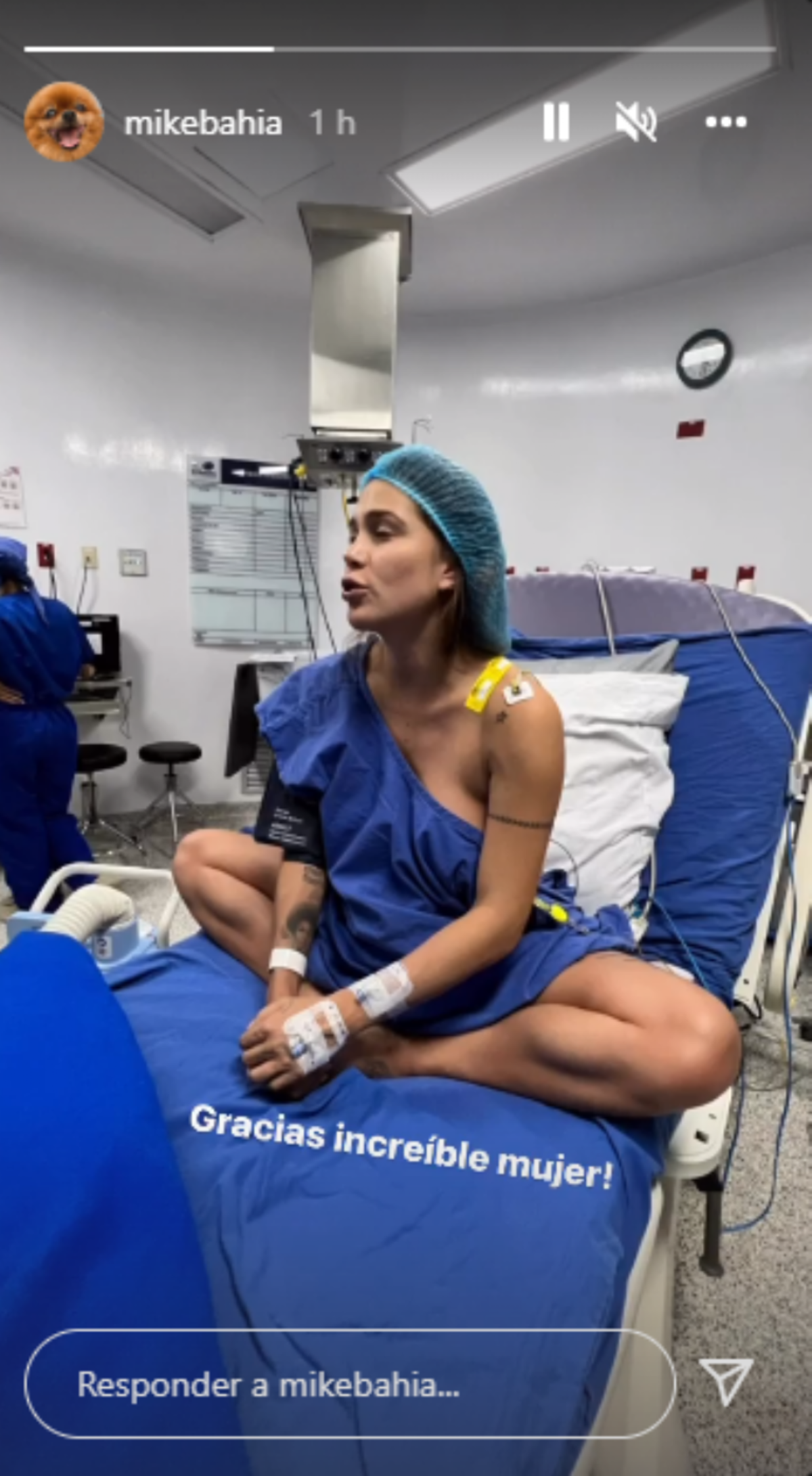 En sus stories, el cantante de urbano subió una imagen de la protagonista de Ritmo salvaje en una cama de hospital, aunque no se especifica si fue tomada antes o después de su labor de parto, pero puede vérsele muy contenta.