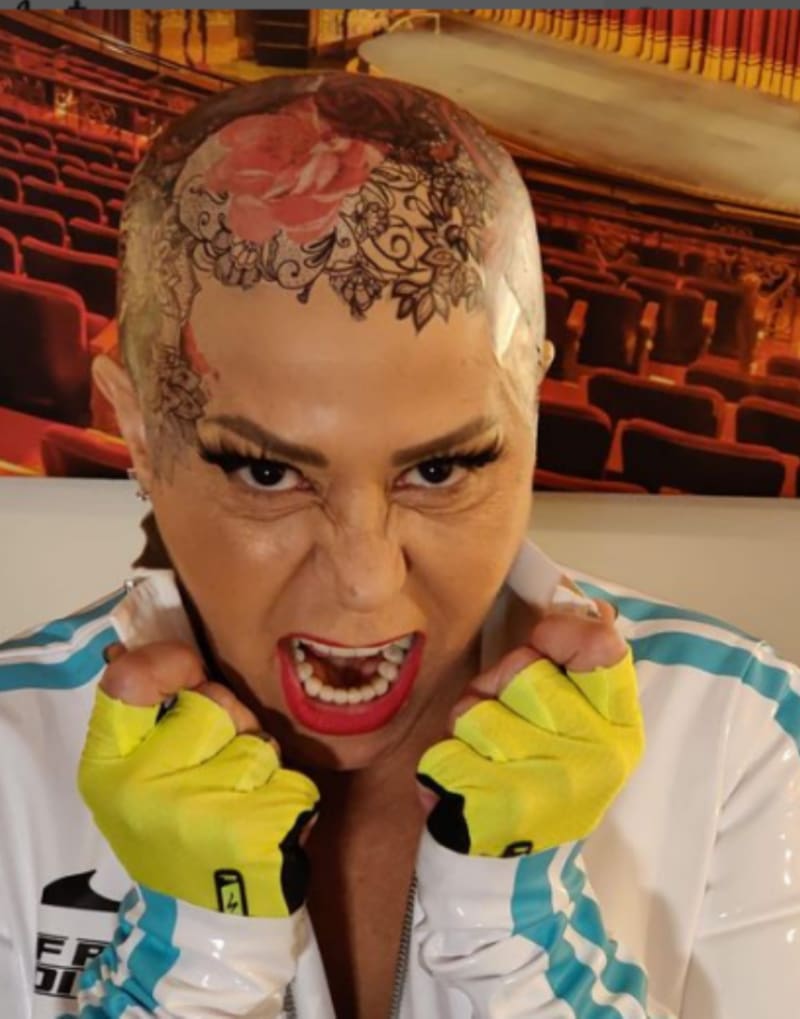 A través de las redes sociales la también llamaba "Reina de Corazones" posteó una serie de imágenes donde se aprecia con más exactitud que no sólo se atrevió a quitarse el cabello, sino que, además se realizó un enorme tatuaje que abarca gran parte de su cabeza, no se sabe si este es real o simplemente es una pintura que implementó para impactar con su apariencia.