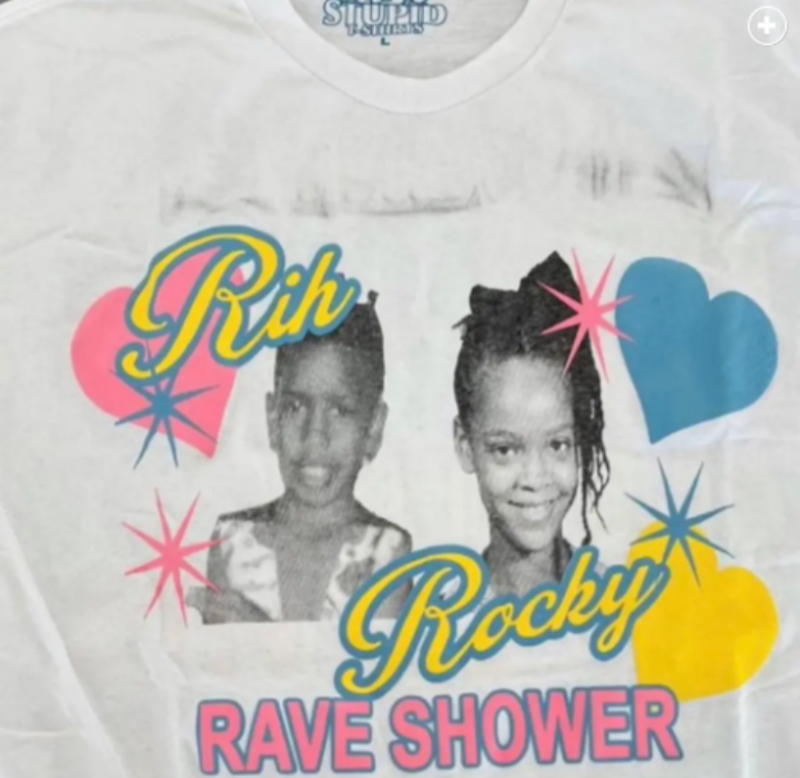 Debido a que fue una fiesta fuera de lo común, los anfitriones regalaron a sus invitados camisetas con leyendas auténticas y fotografías de cuando ellos eran niños. En la parte de enfrente se podía leer: "Rih y Rocky Rave Shower" y atrás: "Fui a la Rave Shower de Rih y Rocky y todo lo que obtuve fue esta increíble camiseta".