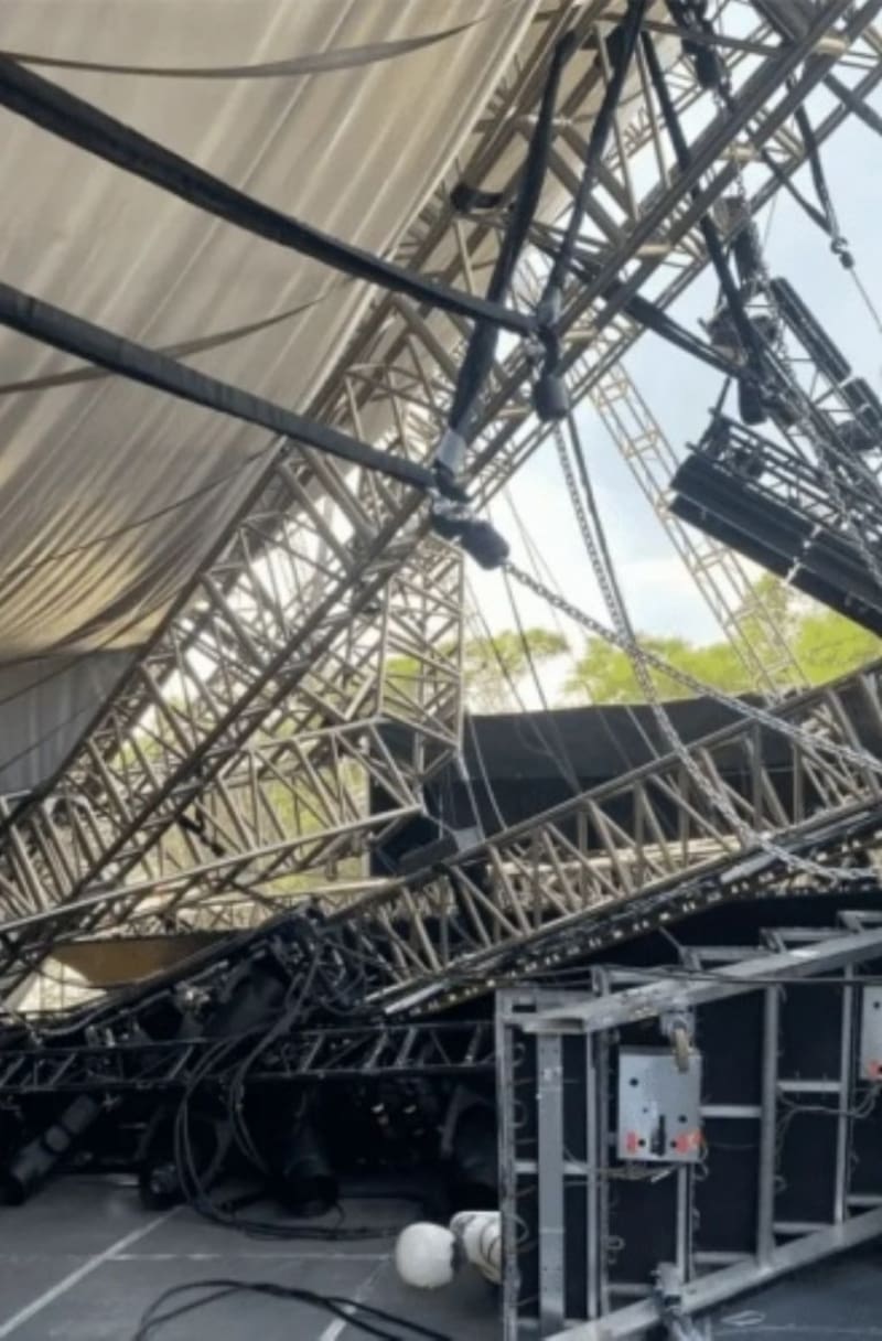 Las fotos que circulan por internet muestran el aparatoso accidente, el cual dejó saldo blanco y no hubo personas lesionadas en el lugar; sin embargo, el recital de la Trevi tuvo que llevarse a cabo en otro recinto de una manera alternativa.