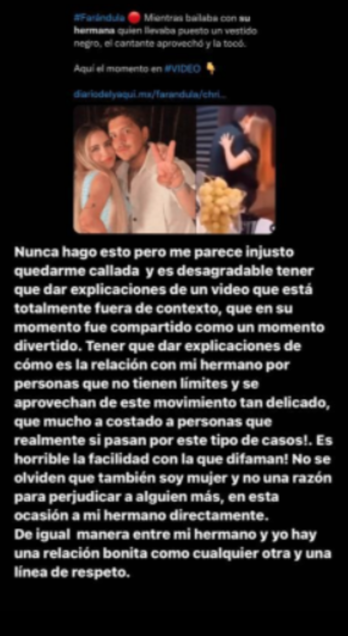 “Tener que dar explicaciones de cómo es la relación con mi hermano por personas que no tienen límites y se aprovechan de este movimiento tan delicado, que mucho ha costado a personas que realmente sí pasan por este tipo de casos”, comenzó escribiendo Amely.