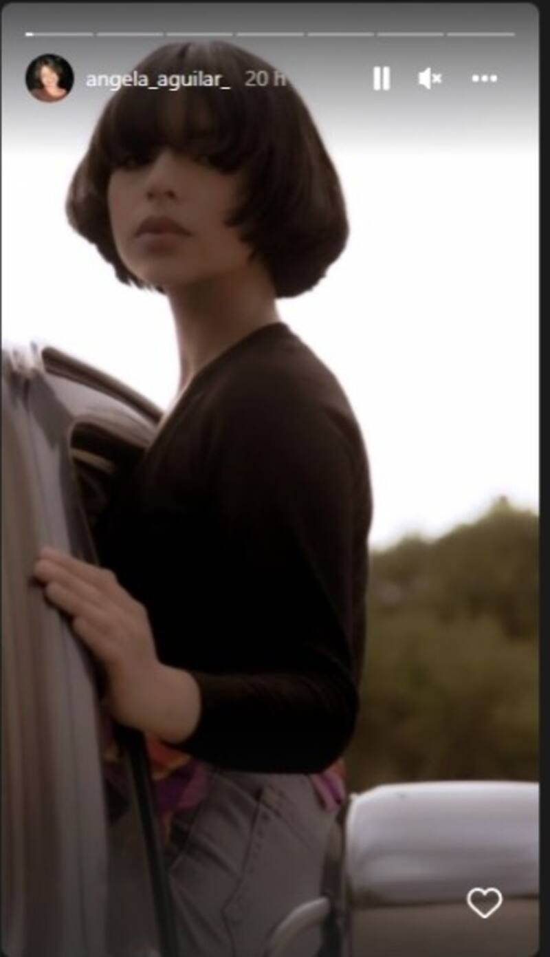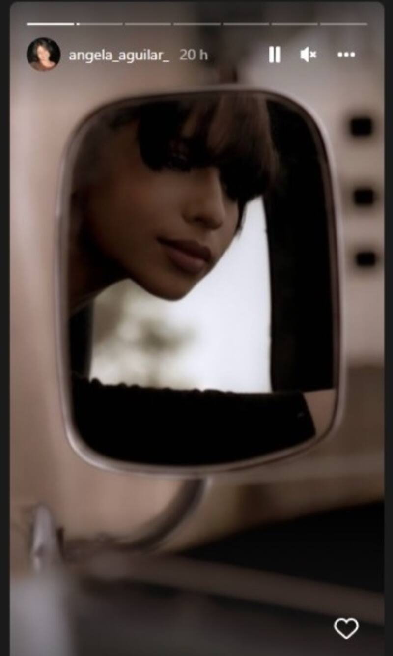 En la segunda imagen es captada a través del retrovisor de un auto; ambos retratos tienen un estilo sepia que le deja el protagonismo a su cabello en color negro. Por el momento se desconoce si esta será la nueva versión de la menor de los Aguilar, pues en historias siguientes aparece con el estilo que normalmente usa.