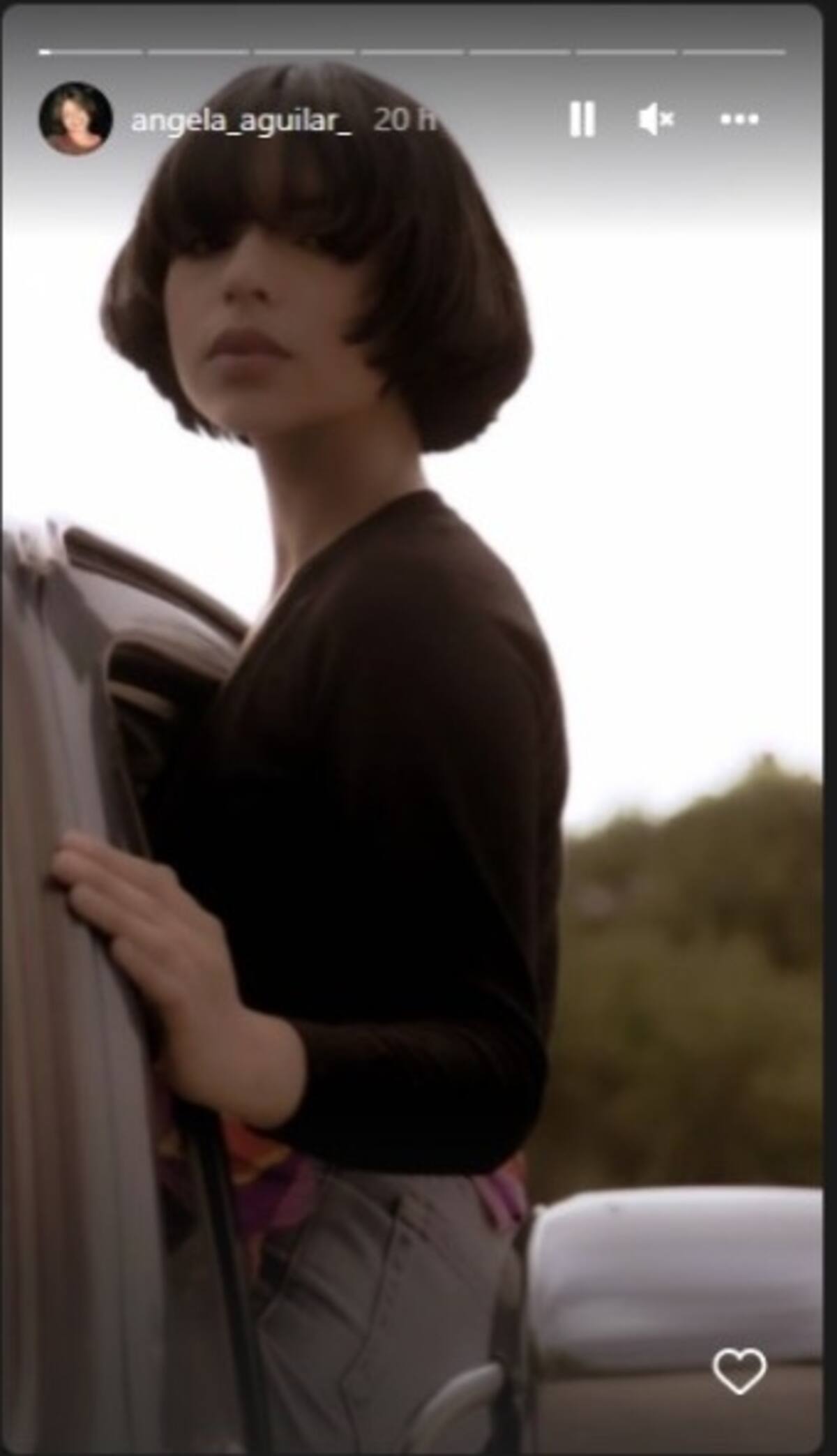 En la segunda imagen es captada a través del retrovisor de un auto; ambos retratos tienen un estilo sepia que le deja el protagonismo a su cabello en color negro. Por el momento se desconoce si esta será la nueva versión de la menor de los Aguilar, pues en historias siguientes aparece con el estilo que normalmente usa.