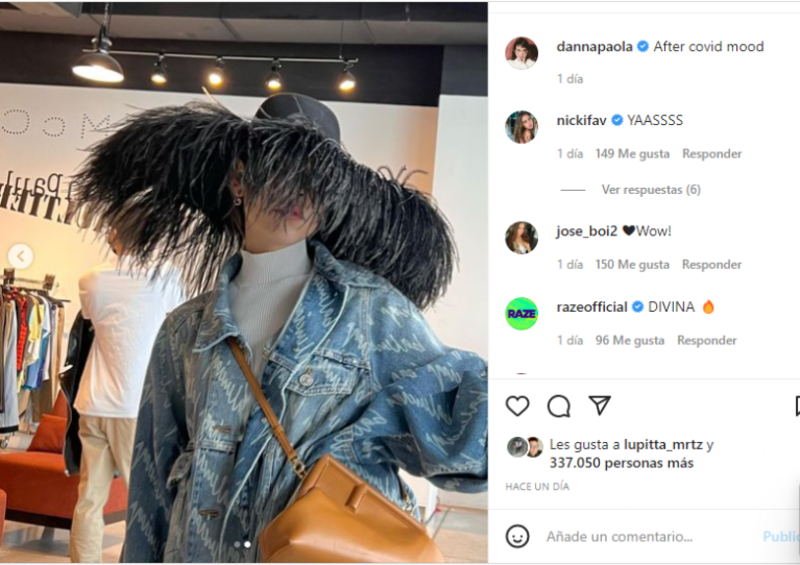 En las fotografías se ve a Danna portando una chaqueta de mezclilla con un bolso en color camel, una blusa con cuello de tortuga y el sombrero que cubre casi todo su rostro. Dichas instantáneas han sido muy bien recibidas por sus fans, quienes ya esperaban verla de nuevo en su vida pública y completamente recuperada.