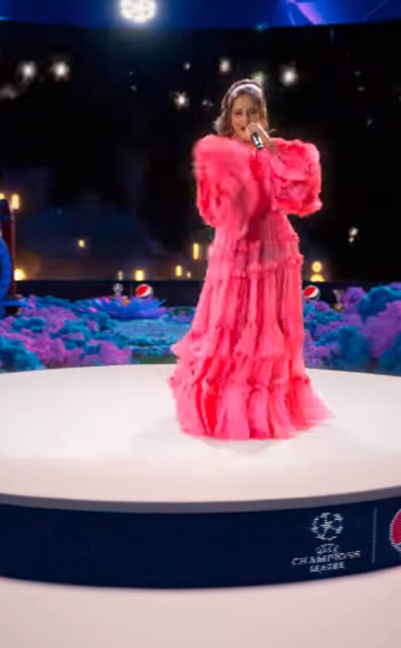 Desde que la ex novia de Shawn Mendes anunció que llevaría su música a la final de la Champions, escogió un vestido de Pineda en color coral que fue alabado por distintos medios internacionales.