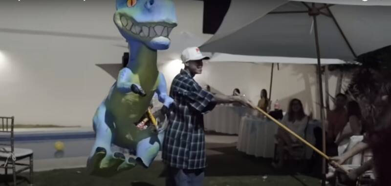 Como parte de la decoración agregaron cupcakes, un pastel, una piñata en forma de dinosaurio, y un oso gigante. Como es tradición en estos eventos, realizaron todo tipo de actividades relacionadas con los bebés, la mamá, comida para bebés, entre otras cosas. Conforme pasó el día, abrieron los regalos, los padres se colocaron al centro y mostraron lo que su bebé había recibido.