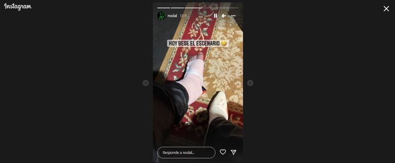 La noche de este sábado 7 de mayo, Nodal se presentó en Guatemala, por lo que mostró algunos detalles del evento a través de sus historias de Instagram. Sin embargo, algo que llamó la atención de los fans fue que anunció haber sufrido una caída en el escenario, ya que el cantante se fotografió con el pie vendado.