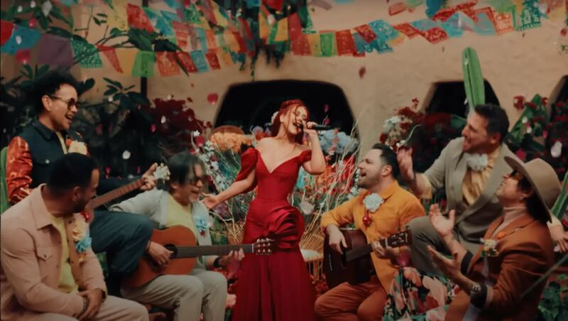 La canción está hecha completamente en español y mezcla sonidos del regional mexicano, dejando a un lado el estilo pop de la cantante con raíces ecuatorianas. Además de ello, la intérprete luce en el video un look con el cabello rojo que hace juego con un vestido del mismo color, en una escenografía de una casona típica mexicana llena de tradiciones del pueblo de México.