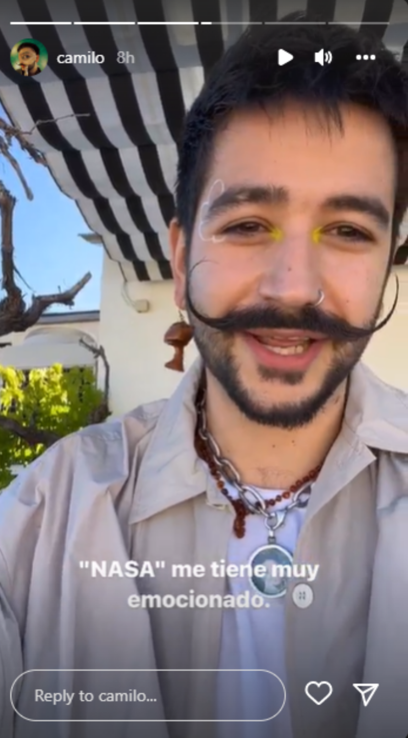 Tras su reciente visita a El Hormiguero, donde interpretó un fragmento de Nasa, el título de su nuevo sencillo, Camilo publicó también algunas historias en su cuenta de Instagram para expresar que se siente muy emocionado con su colaboración y externo también lo mucho que esto significa para él, Sanz y sus fans: “Nasa me tiene muy emocionado”, escribió.