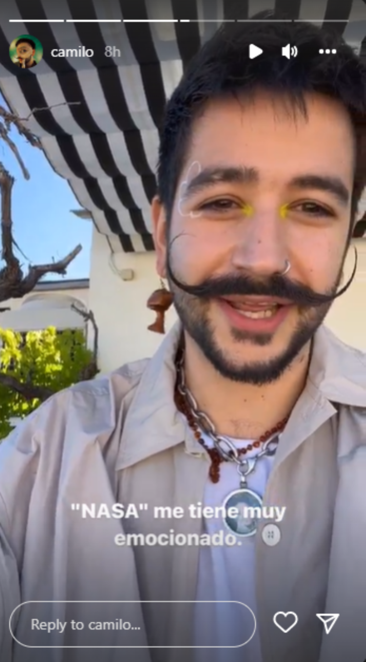 Tras su reciente visita a El Hormiguero, donde interpretó un fragmento de Nasa, el título de su nuevo sencillo, Camilo publicó también algunas historias en su cuenta de Instagram para expresar que se siente muy emocionado con su colaboración y externo también lo mucho que esto significa para él, Sanz y sus fans: “Nasa me tiene muy emocionado”, escribió.