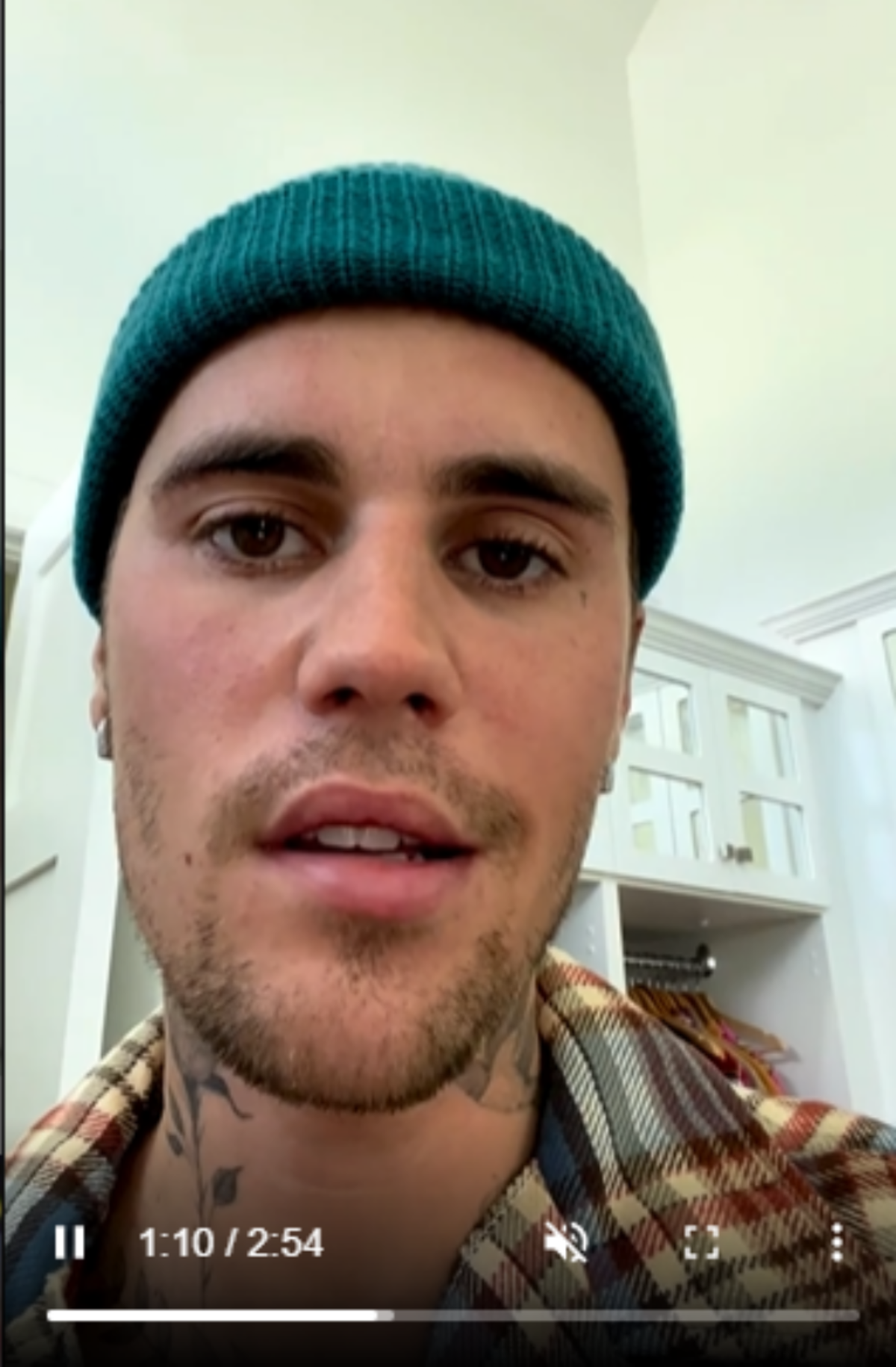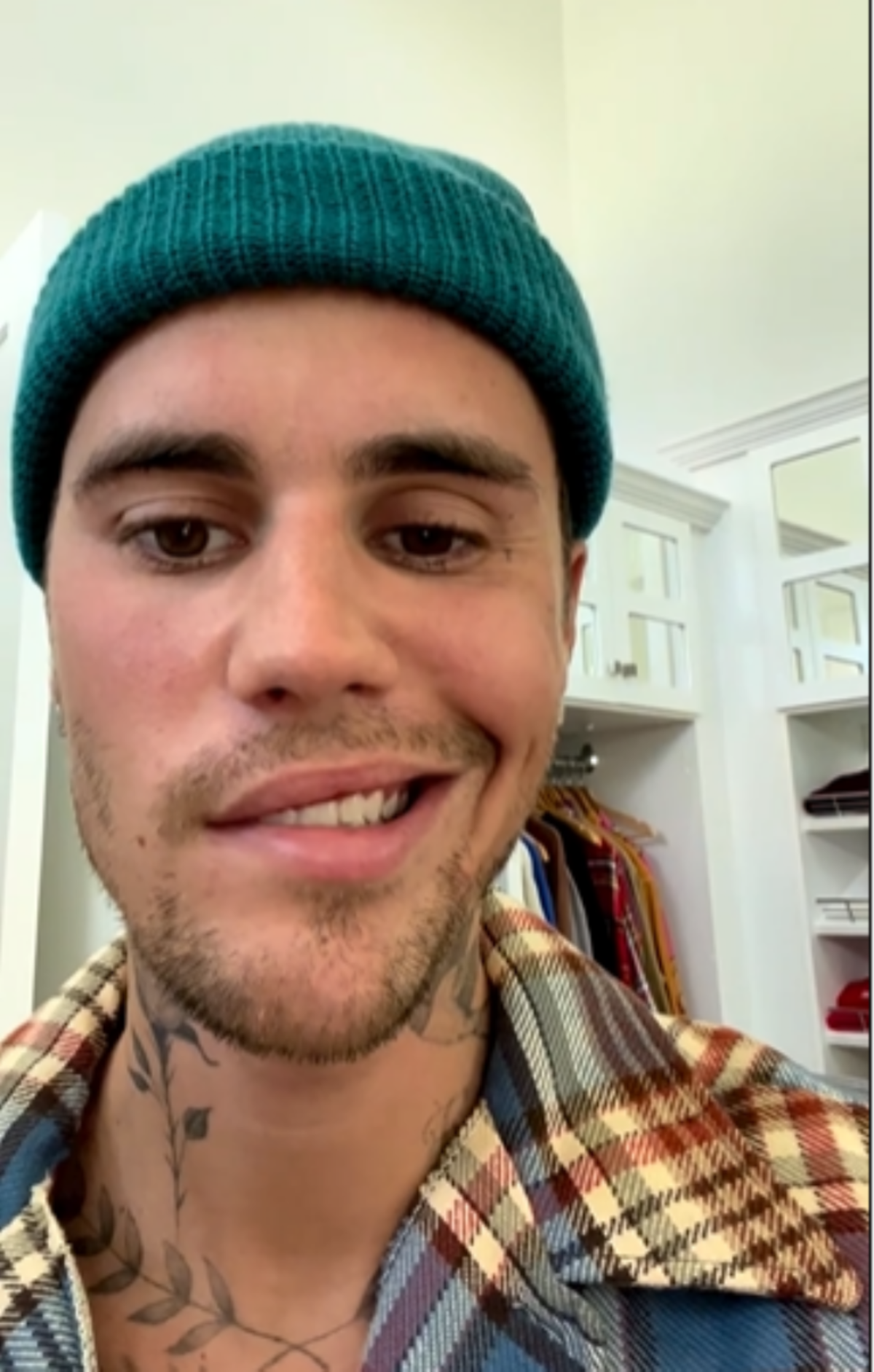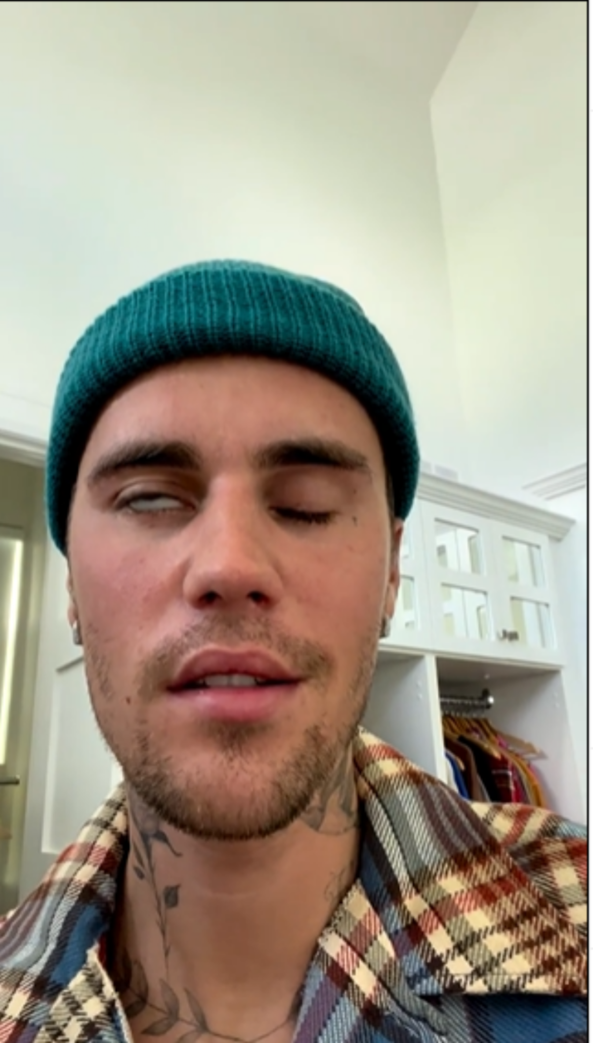 “Hola a todos, quiero actualizarlos sobre mi estado de salud. Obviamente, como probablemente puedes ver con mi cara, tengo este síndrome llamado síndrome de Ramsay Hunt y es por este virus que ataca los nervios de mi oído y mis nervios faciales y ha causado que mi cara tenga parálisis”, comienza diciendo Bieber en el clip.