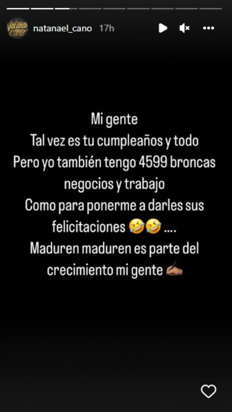"Mi gente, tal vez es tu cumpleaños y todo, pero yo también tengo 4599 broncas, negocios y trabajo como para ponerme a darles sus felicitaciones. Maduren, es parte del crecimiento mi gente.