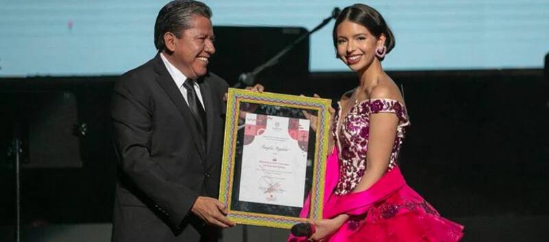 La joven cantante agradeció la distinción y mencionó que se sentía muy honrada: "Qué honor, la verdad para mí esto es un gran orgullo. Yo creo que compruebo, que no importa dónde naces, sino importa de dónde es tu corazón".