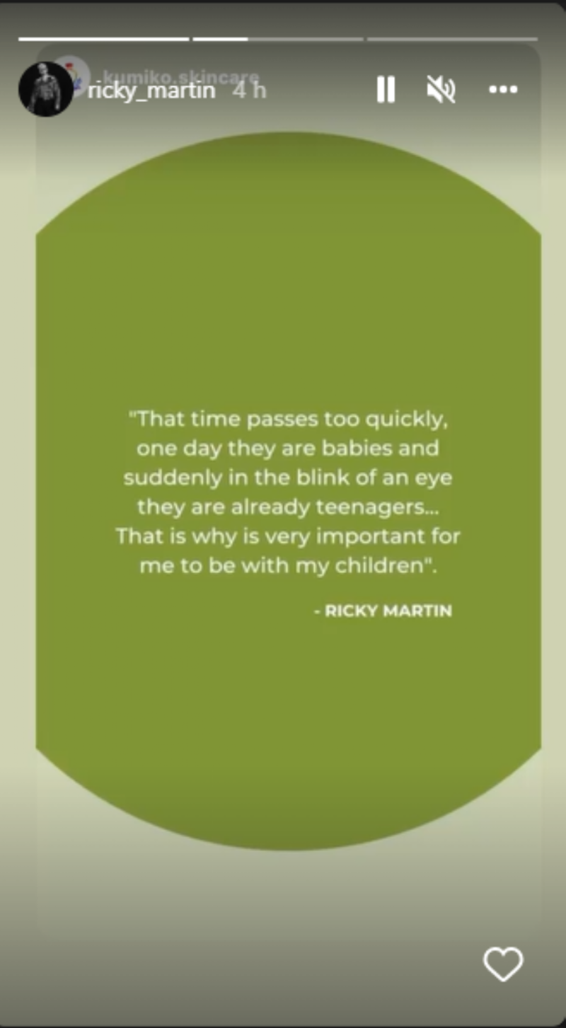 “El tiempo pasa demasiado rápido, un día son bebés y de repente, en un abrir y cerrar de ojos ya son adolescentes, por eso es muy importante estar con mis hijos”, indicó en un mensaje que además compartió una marca de cuidado de la piel para hombres.