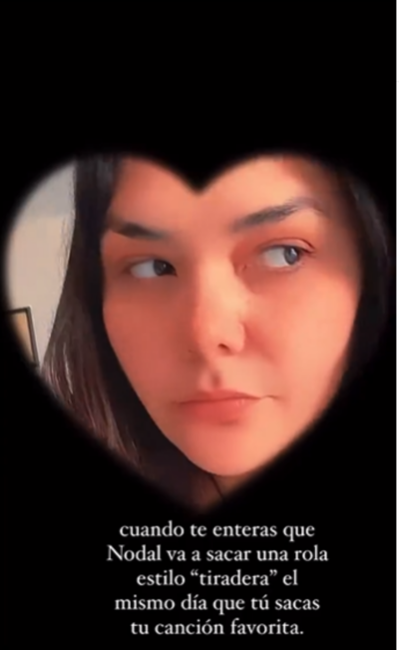 “Cuando te enteras que Nodal va a sacar una rola estilo tiradera el mismo día que tú sacas tu canción favorita… escribió sobre el clip que fue publicado tanto en sus historias como en el perfil.
