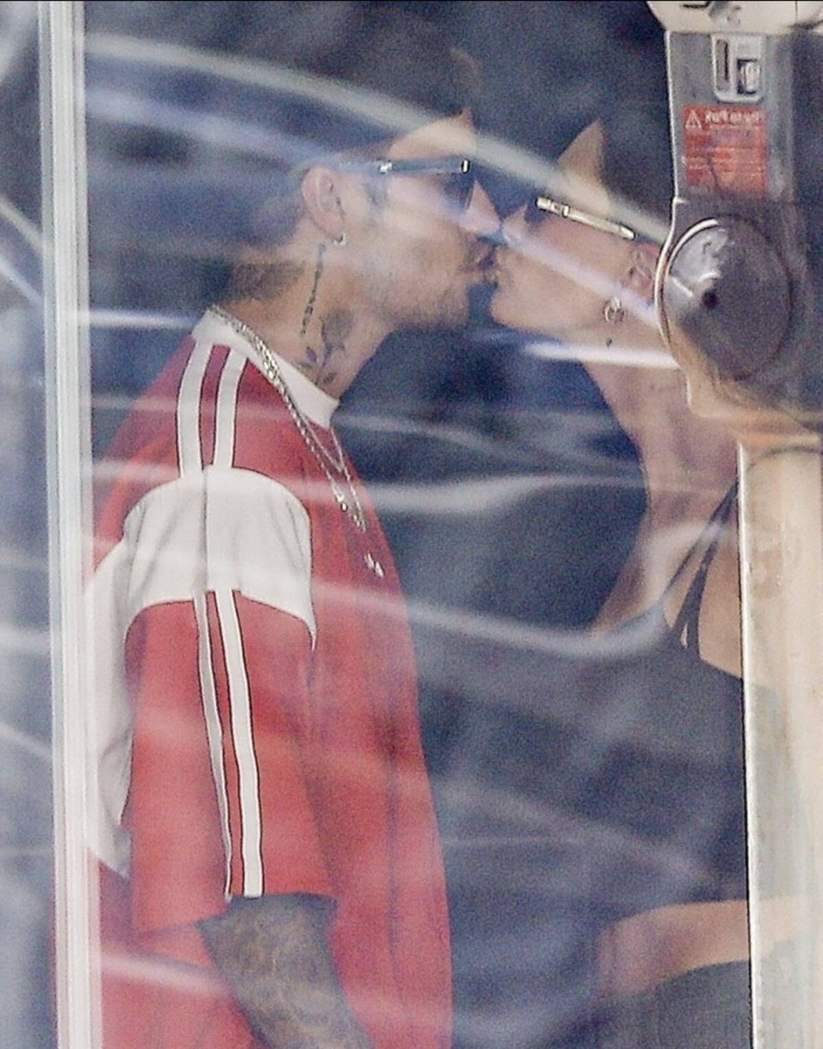 Han pasado semanas desde ese entonces y la persona que ha estado muy cerca de él y apoyándolo en todo momento es su esposa, la modelo Hailey Bieber, con quien recientemente fue captado. La pareja fue fotografiada en un tierno momento, mientras ambos se dan un dulce beso en los labios.