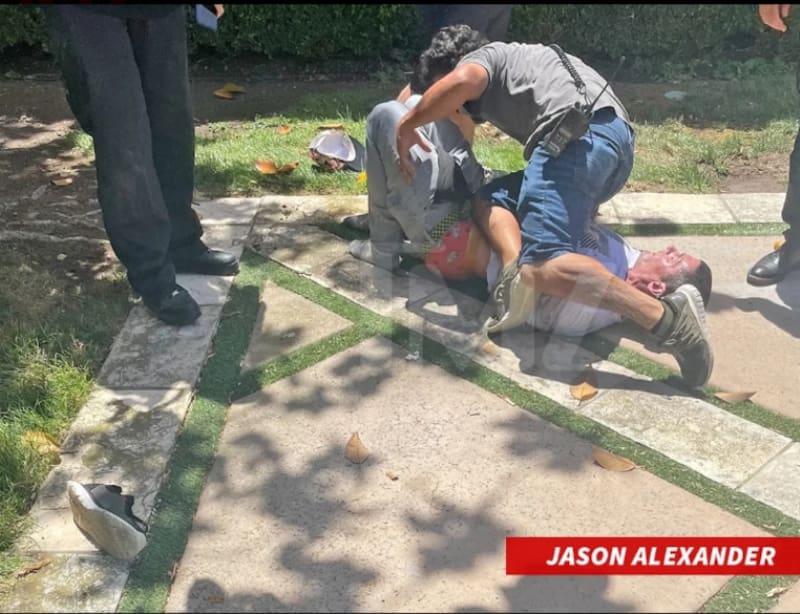"Entonces, aquí está la primicia, muchachos, de la boda del año. Jason Alexander, ¿qué pasa?", dijo, saludando a los trabajadores. "Mi nombre es Jason Alexander. Britney me invitó aquí. Britney Spears me invitó aquí. Ella es mi primera esposa, mi única esposa. Soy su primer esposo. Estoy aquí para arruinar la boda".