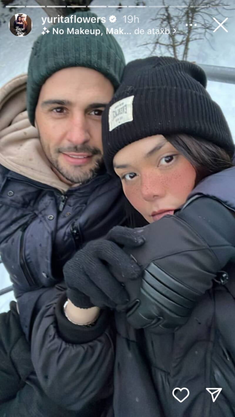 Posteriormente subió varias fotografías del lugar que está visitando y agregó un retrato en la que luce sonriente junto a Matías, ambos con gorros, chamarras y guantes que los cubren del frío, también agregó una instantánea en la que capturó sus pies y los su esposo.