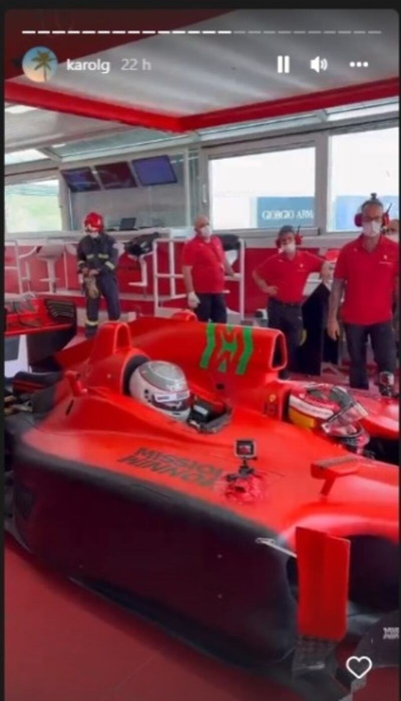 Carlos Sainz, piloto de la escudería Ferrari, utilizó sus redes sociales para enviarle un mensaje a Karlos G después de que ambos subieran a un auto de Fórmula 1 en el que recorrieron la pista a gran velocidad. "Bien aguantado", escribió en una historia de Instagram en la que compartió el posteo que subió la cantante.
