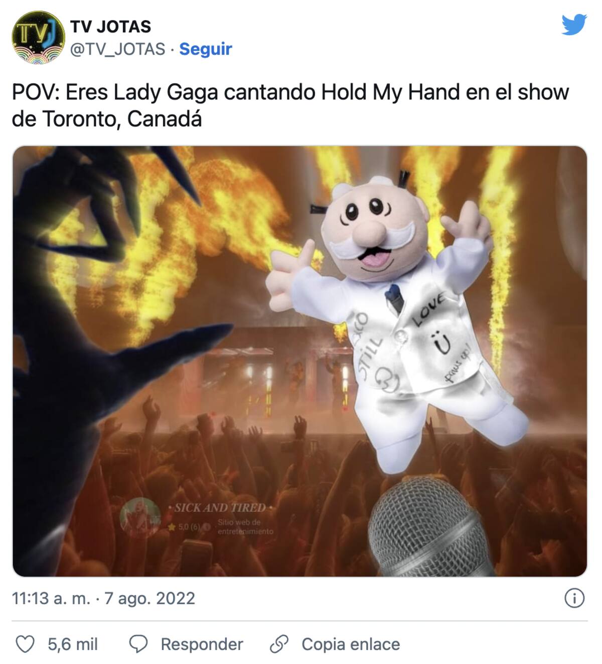 Fue en el show, que dio como parte de su Chromatica Ball Tour, mientras interpretaba la canción Hold My Hand que un fan mexicano arrojó el muñeco que se impactó en la cara de la estrella.