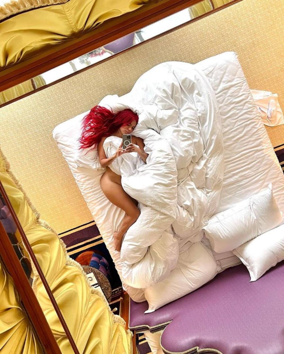 La cantante colombiana Karol G dejó a sus fans con la boca abierta por la atrevida fotografía que subió a sus redes sociales, en la cual se le puede ver sin nada de ropa y sólo cubierta con una sábana blanca mientras está acostada en una amplia cama.