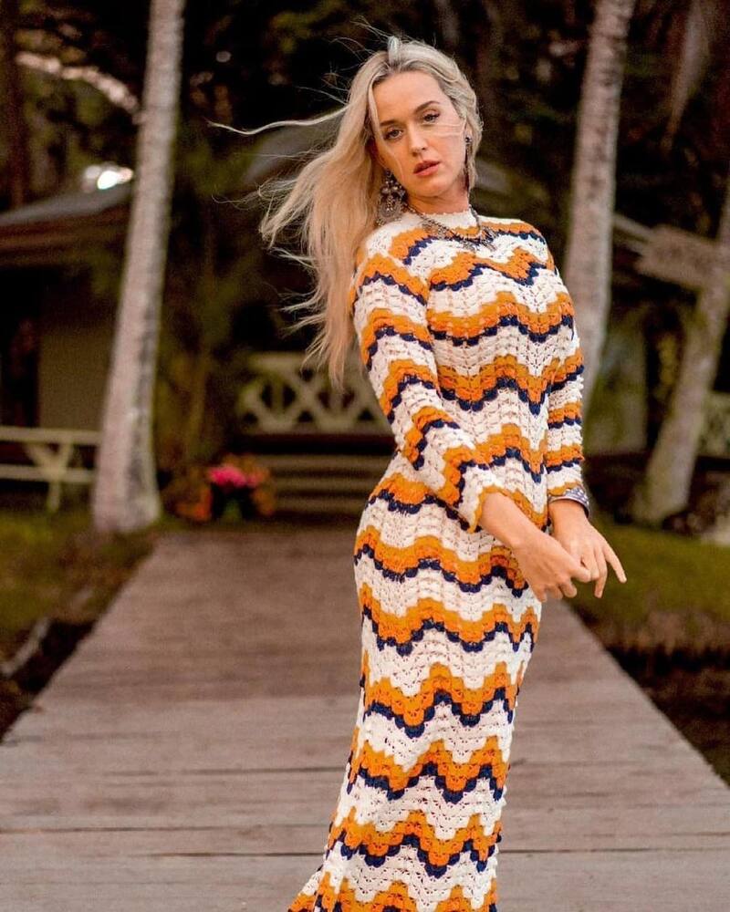 Fue en 2021 cuando la estrella lució la prenda llamada Abanico, que pertenece a la marca Escvdo, la cual se describe como "una empresa de moda de lujo contemporánea y ética inspirada y dedicada a la herencia del país sudamericano". La esposa de Orlando Bloom lució ese atuendo para filmar el videoclip Electric, con el cual celebraron los 25 años del anime Pokemón.