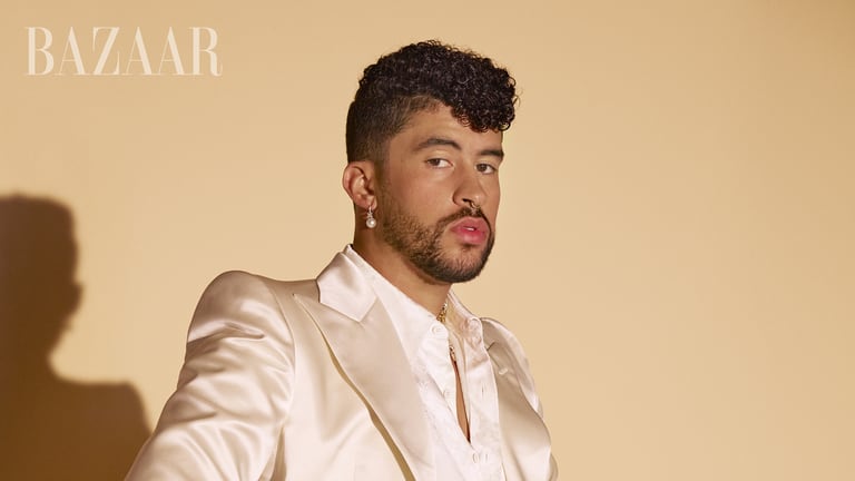 Para la edición del mes de septiembre, la revista estadounidense Harper's Bazaar eligió al intérprete de Me porto bonito quien se dejó ver con un impresionante vestido blanco de doble corte con transparencia inferior, causando gran revuelo en redes sociales.