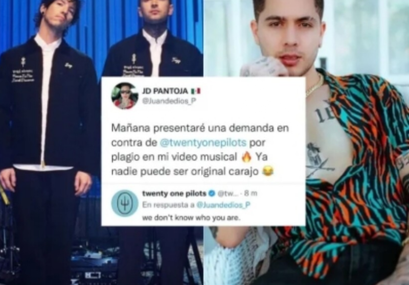 “Mañana presentaré una demanda en contra de “twentyonepilots por plagio en mi video musical. Ya nadie puede ser original” se lee en la advertencia del influencer, la cual más tarde obtiente respuesta del dueto: “No sabemos quién eres"