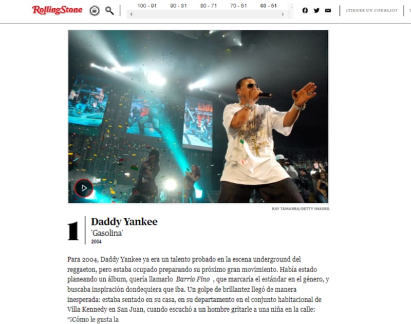 La revista estadounidense está dedicada a la música y la cultura popular, con categorías como Los 500 Mejores Álbumes de Todos los Tiempos o Los 100 Mejores Bateristas de la Historia, pero ahora, ha revelado cuales son las mejores canciones de reguetón de los últimos años, quedando el éxito del “The Big Boss” de primero.
