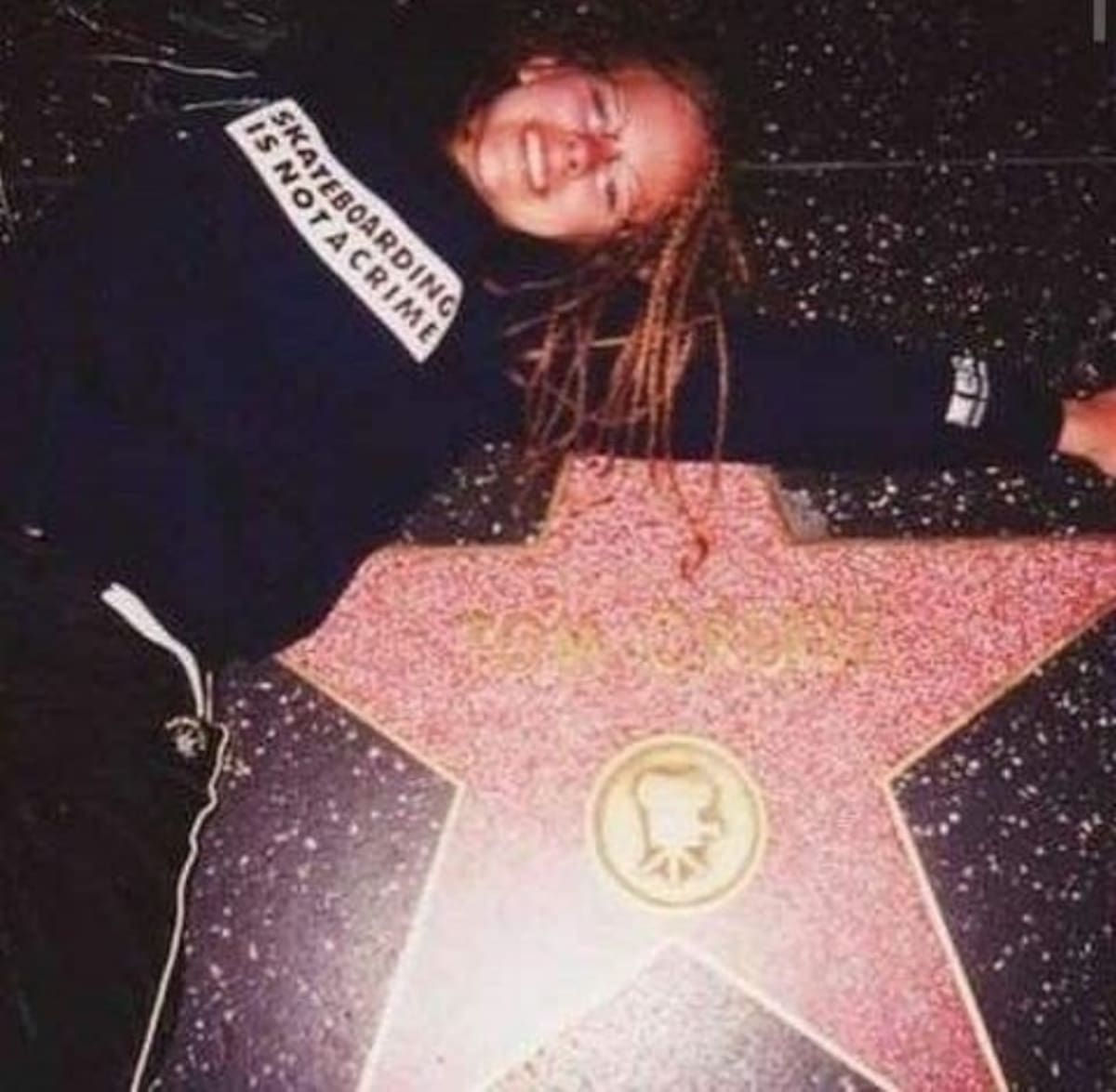 Luego de ser presentada por la organizadora, Lavigne comenzó un discurso lleno de nostalgia. Mostrando una foto suya a los 16 años recostada sobre la estrella en honor a Tom Cruise, mientras lucía una sudadera con capucha que tenía la leyenda “skateboarding no es un crimen”.