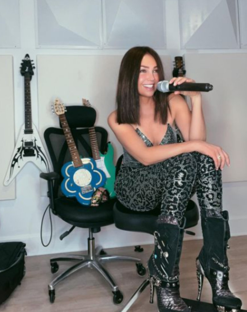 En sus más recientes historias de Instagram la cantante compartió una serie de videos en los que se le puede ver en un pequeño espacio que cuenta con todo lo necesario para que pueda llevar a cabo sus grabaciones sin distracción alguna.
