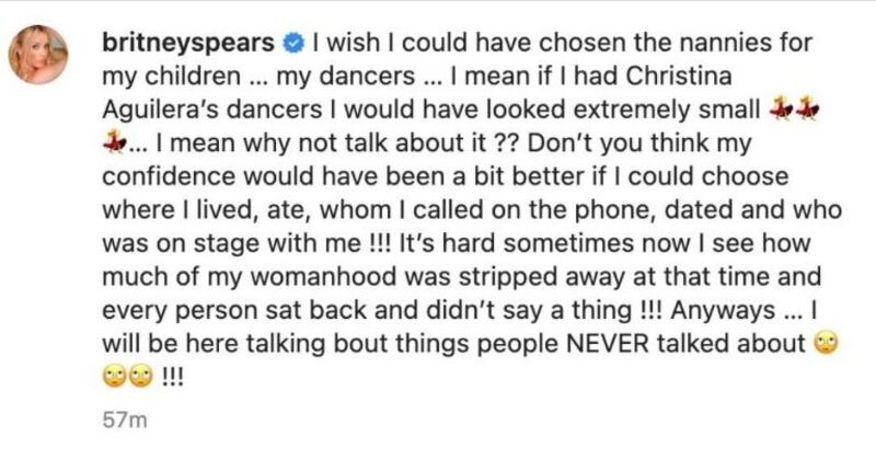 A través de un largo mensaje, la ntérprete de Ops! I did it again habló sobre su experiencia en los escenarios haciendo especial énfasis en su cuerpo, pues según explicó, se dio cuenta que “la única manera de verse delgada era estar rodeada de personas gordas” y como ejemplo decidió exponer a los bailarines de Christina.