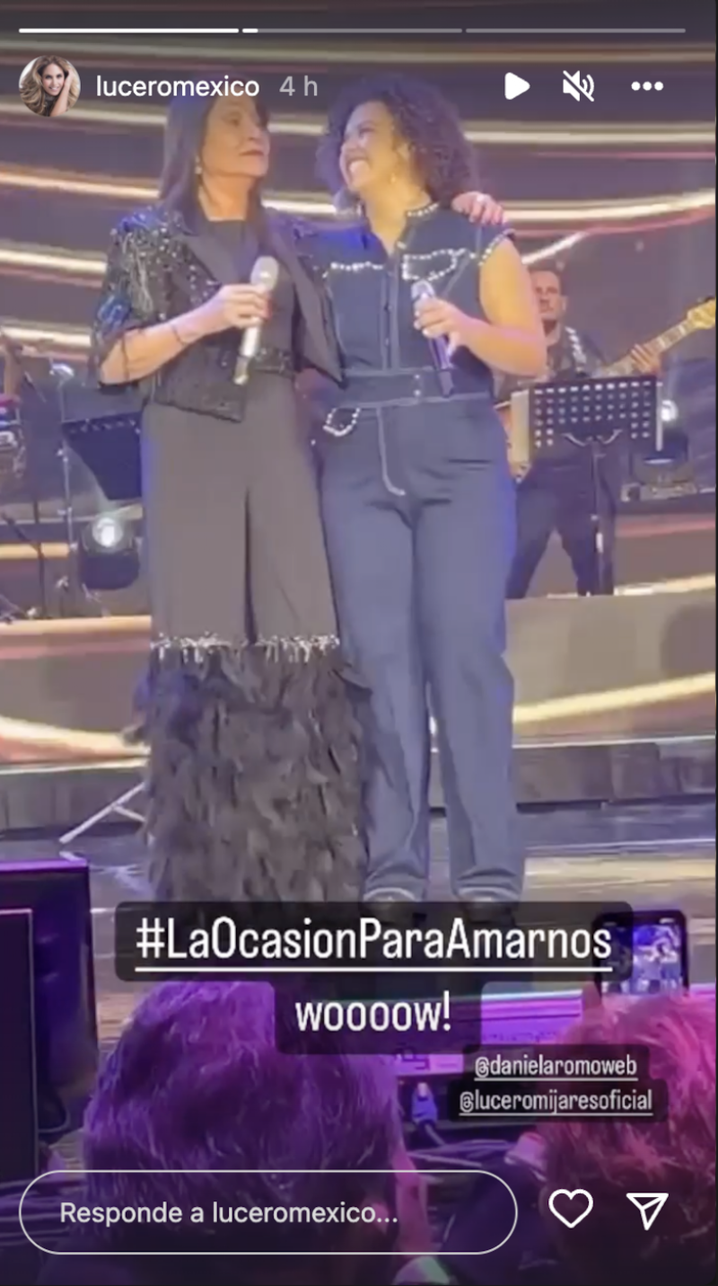 “Gracias Daniela Romo maravillosa por invitar a mi Lucero Mijares a cantar contigo y compartir con ella tu sold out en el Auditorio Nacional”, escribió la cantante de No me hablen de él en el clip de su hija cantando a dúo.